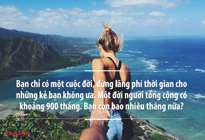 8. Bạn chỉ có một cuộc đời, đừng lãng phí thời gian cho những kẻ bạn không ưa. Một đời người tổng cộng có khoảng 900 tháng. Bạn còn bao nhiêu tháng nữa?